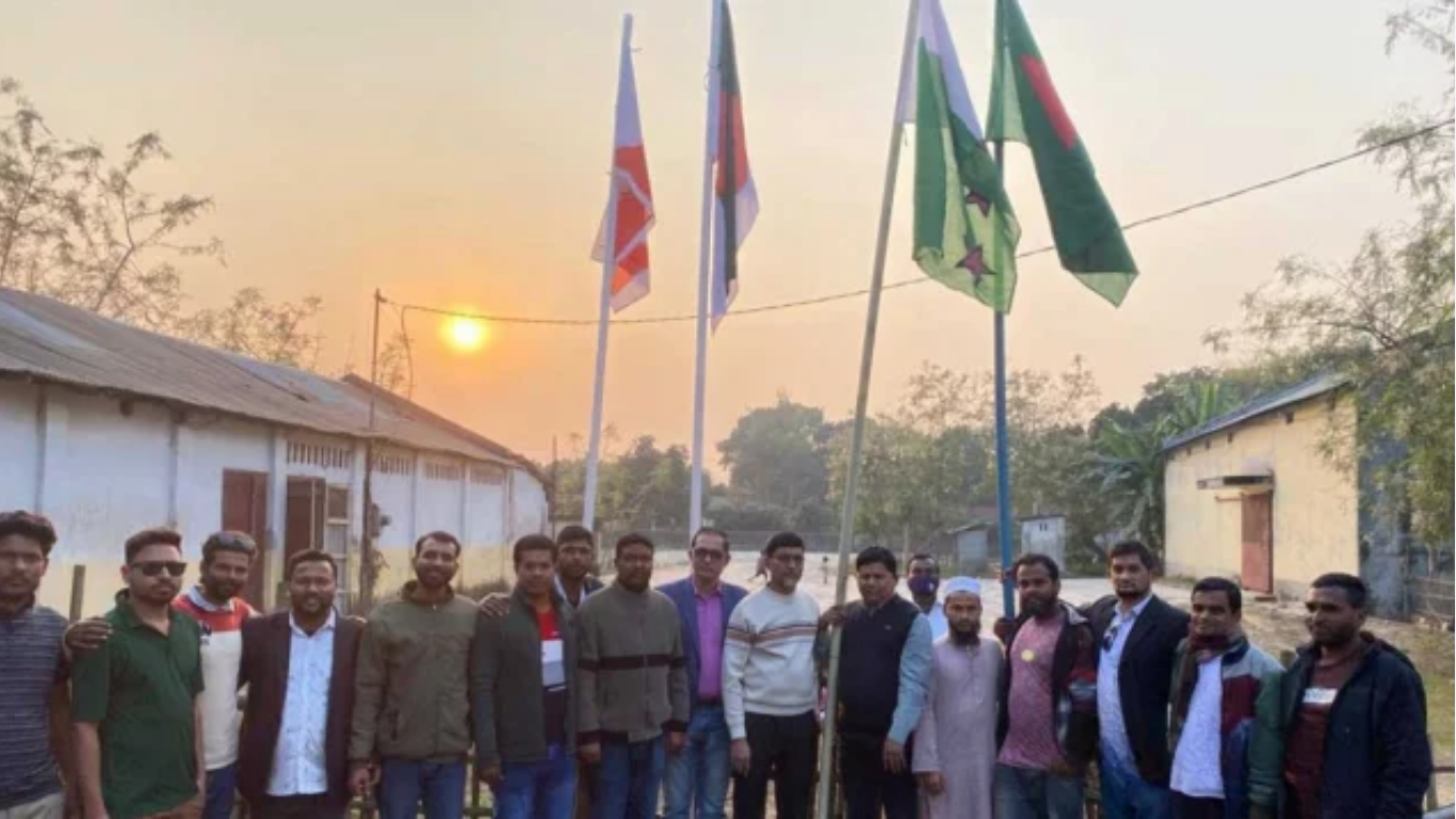 মহান শহীদ দিবস ও আন্তর্জাতিক মাতৃভাষা দিবস উপলক্ষে জামালপুর জেলার বকশীগঞ্জ উপজেলার রাজনীতিতে এক আকস্মিক ও চাঞ্চল্যকর ঘটনার জন্ম হয়েছে। বর্তমান রাজনৈতিক প্রেক্ষাপটে ‘কার্যক্রম নিষিদ্ধ’ থাকা সত্ত্বেও বকশীগঞ্জের বগারচর ইউনিয়নে বাংলাদেশ আওয়ামী লীগের স্থানীয় কার্যালয়ে প্রকাশ্য দিবালোকে জাতীয় ও দলীয় পতাকা উত্তোলন করেছেন দলটির নেতাকর্মীরা। শুধু পতাকা উত্তোলনই নয়, দীর্ঘ বিরতির পর প্রকাশ্যে তাদের কণ্ঠে সজোরে উচ্চারিত হয়েছে দলীয় সিগনেচার স্লোগান ‘জয় বাংলা’। শনিবার (২১ ফেব্রুয়ারি) সকালে ঘটা এই অভাবনীয় ও দুঃসাহসিক ঘটনার একটি ভিডিও মুহূর্তের মধ্যেই সামাজিক যোগাযোগমাধ্যমে ছড়িয়ে পড়লে পুরো জেলাজুড়ে ব্যাপক রাজনৈতিক উত্তাপ ও মিশ্র প্রতিক্রিয়ার সৃষ্টি হয়।